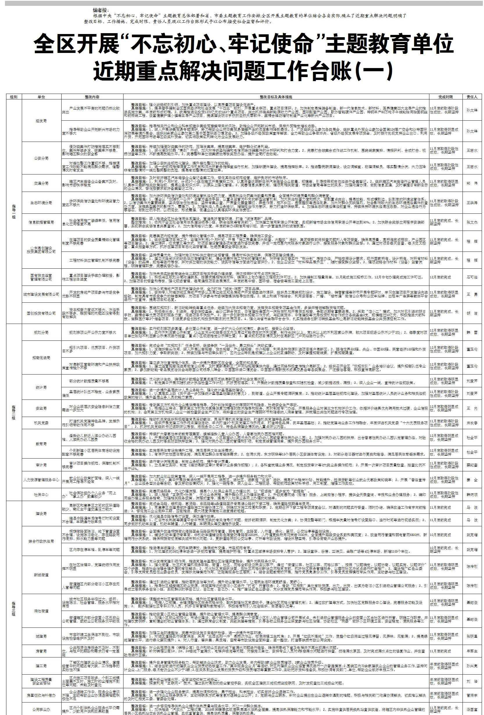 全区开展“不忘初心、牢记使命”主题教育单位近期重点解决问题工作台账(一)