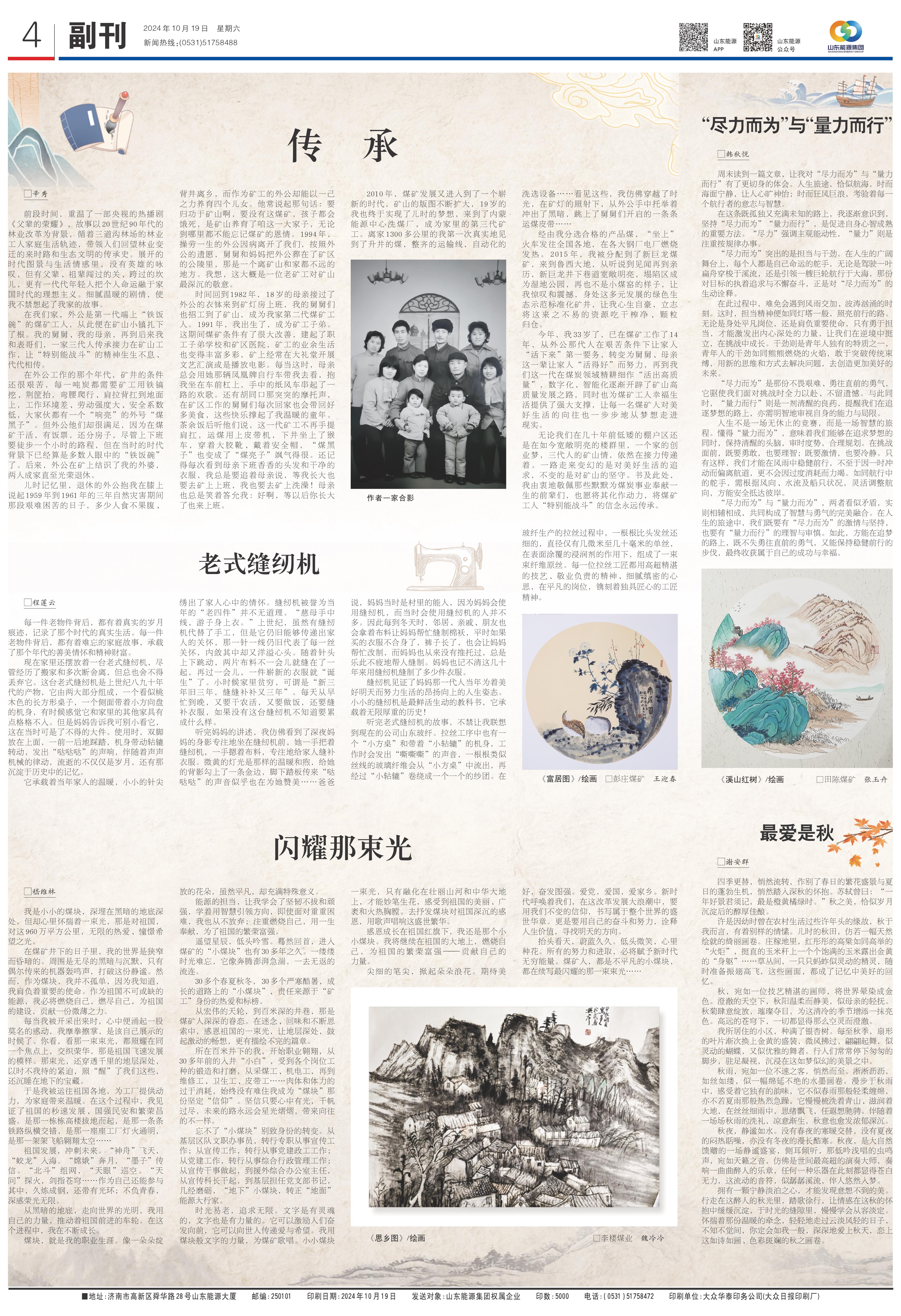 从宏伟的天轮,到百米深的井巷,那是煤矿人深深的眷恋。在迷念、回味和不断思索中,感恩祖国的一束光,让地层深处,鼓起激动的畅想,更有描绘不完的篇章。