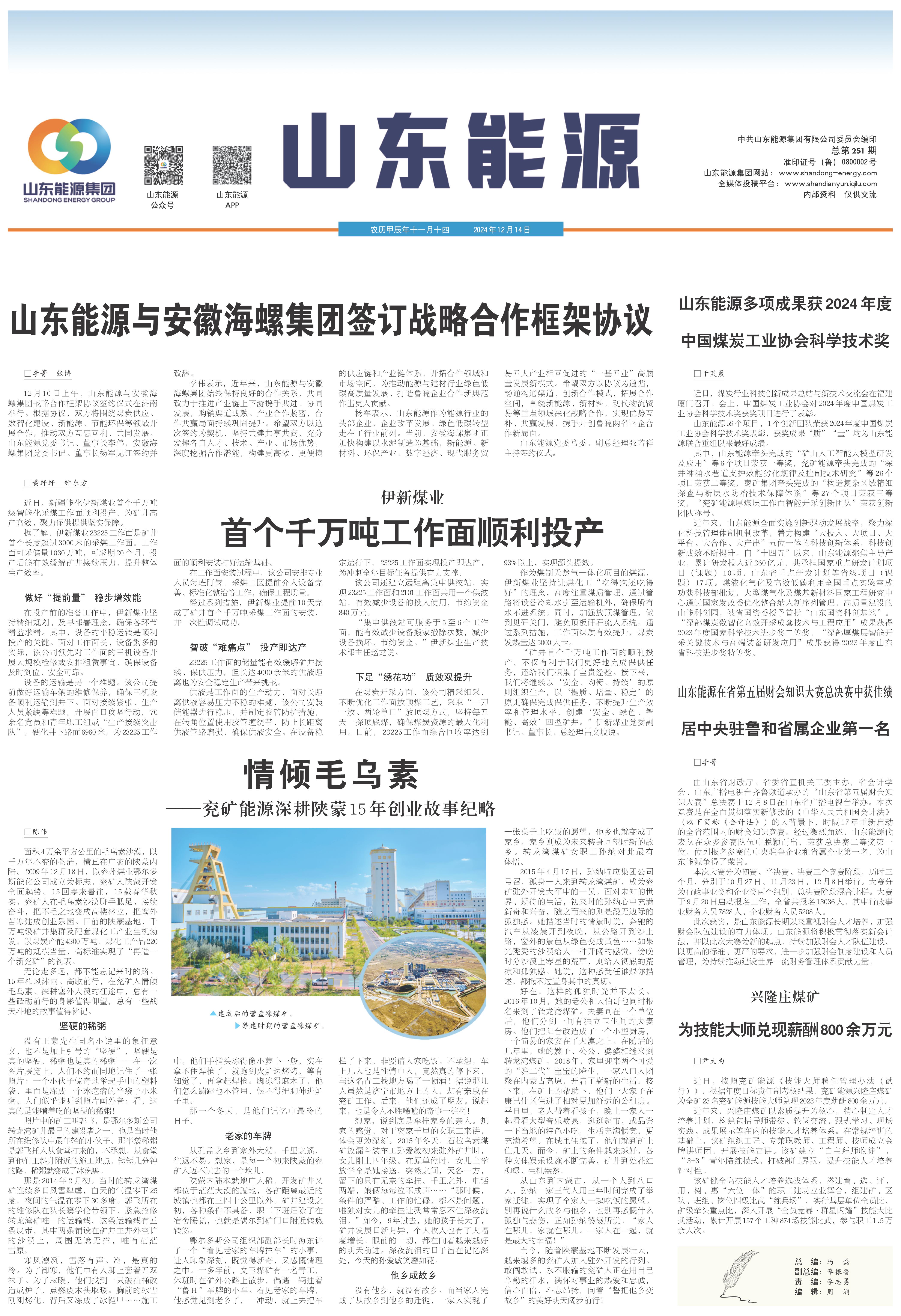 面积4万余平方公里的毛乌素沙漠,以千万年不变的苍茫,横亘在广袤的陕蒙内陆。2009年12月18日,以兖州煤业鄂尔多斯能化公司成立为标志,兖矿人陕蒙开发全面起势。15回寒来暑往,15载春华秋实,兖矿人在毛乌素沙漠胼手胝足、接续奋斗,把不毛之地变成高楼林立,把塞外苦寒建成创业乐园。目前的陕蒙基地,千万吨级矿井集群及配套煤化工产业生机勃发,以煤炭产能4300万吨、煤化工产品220万吨的规模当量,高标准实现了“再造一个新兖矿”的初衷。