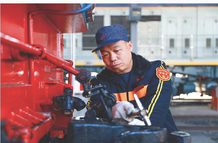 刚参加工作老袁就在机务段,那时候在兖矿能源矿区铁路上跑的还是蒸汽机车。想着自己以后也能像铁道游击队电影里演的一样,威风凛凛的开着火车,是一份多么让人羡慕的工作。然而事实并非如此,邻居们见了都问:袁兄弟,你在单位干啥活?他说开火车,看着邻居们羡慕的目光,他的脸上强忍着笑,心里的苦却只有自己明白:其实咱就是个抡大掀、烧锅炉的。一个班四、五吨的煤要往锅炉里添,夏天50多度的高温,冬天四面透风的简陋司机室,对谁来说都是一种考验。当时流传着这样一句话:远看要饭的,近看拾炭的,走上去一问,原来你是机务段的!