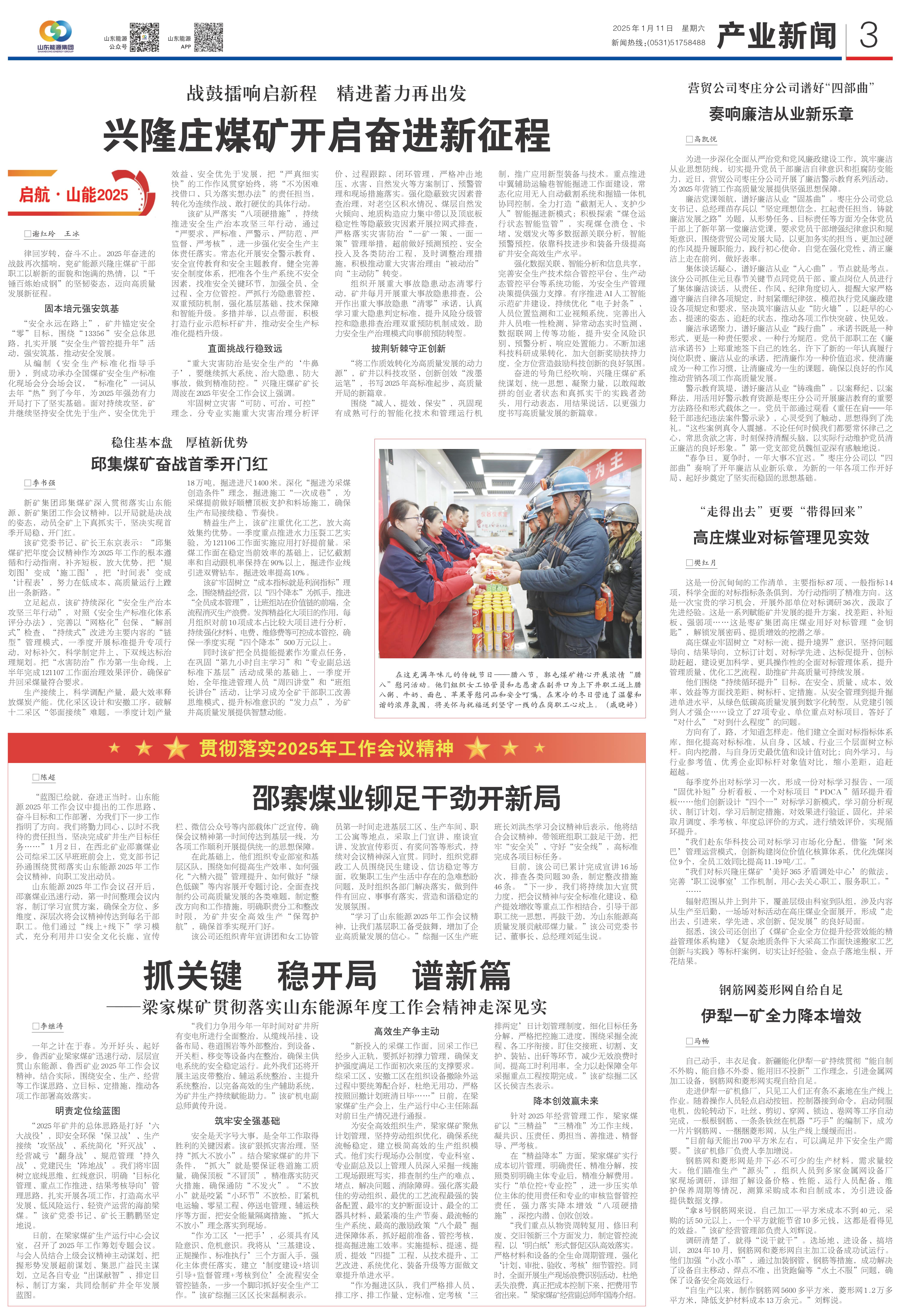 该矿党委书记、矿长王东京表示:“邱集煤矿把年度会议精神作为2025年工作的根本遵循和行动指南,补齐短板,放大优势,把‘规划图’变成‘施工图’,把‘时间表’变成‘计程表’,努力在低成本、高质量运行上蹚出一条新路。”