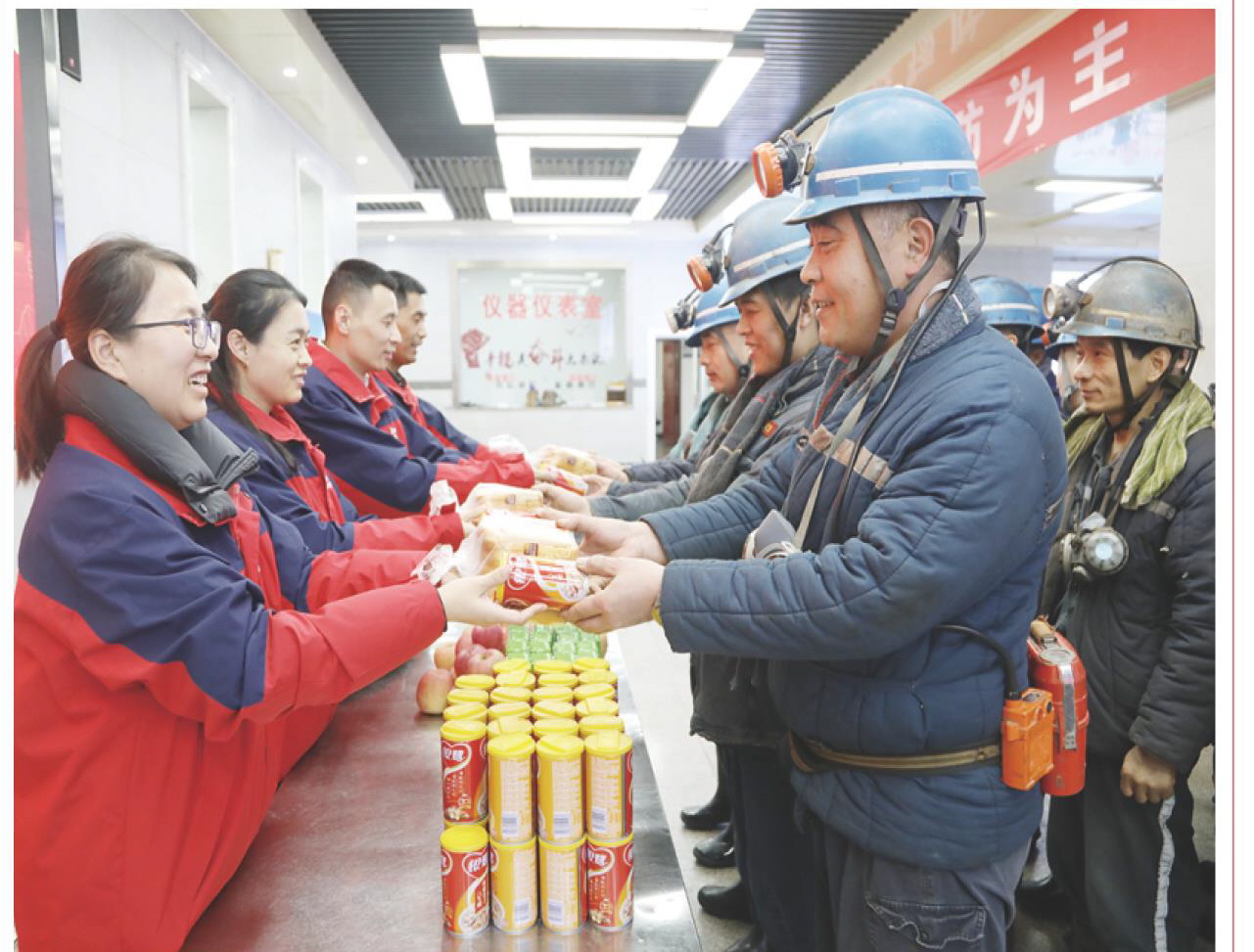 在这充满年味儿的传统节日———腊八节,郭屯煤矿精心开展浓情“腊八”慰问活动。他们组织女工协管员和志愿者在副井口为上下井职工送上腊八粥、牛奶、面包、苹果等慰问品和安全叮嘱,在寒冷的冬日营造了温馨和谐的浓厚氛围,将关怀与祝福送到坚守一线的在岗职工心坎上。(戚晓婷)