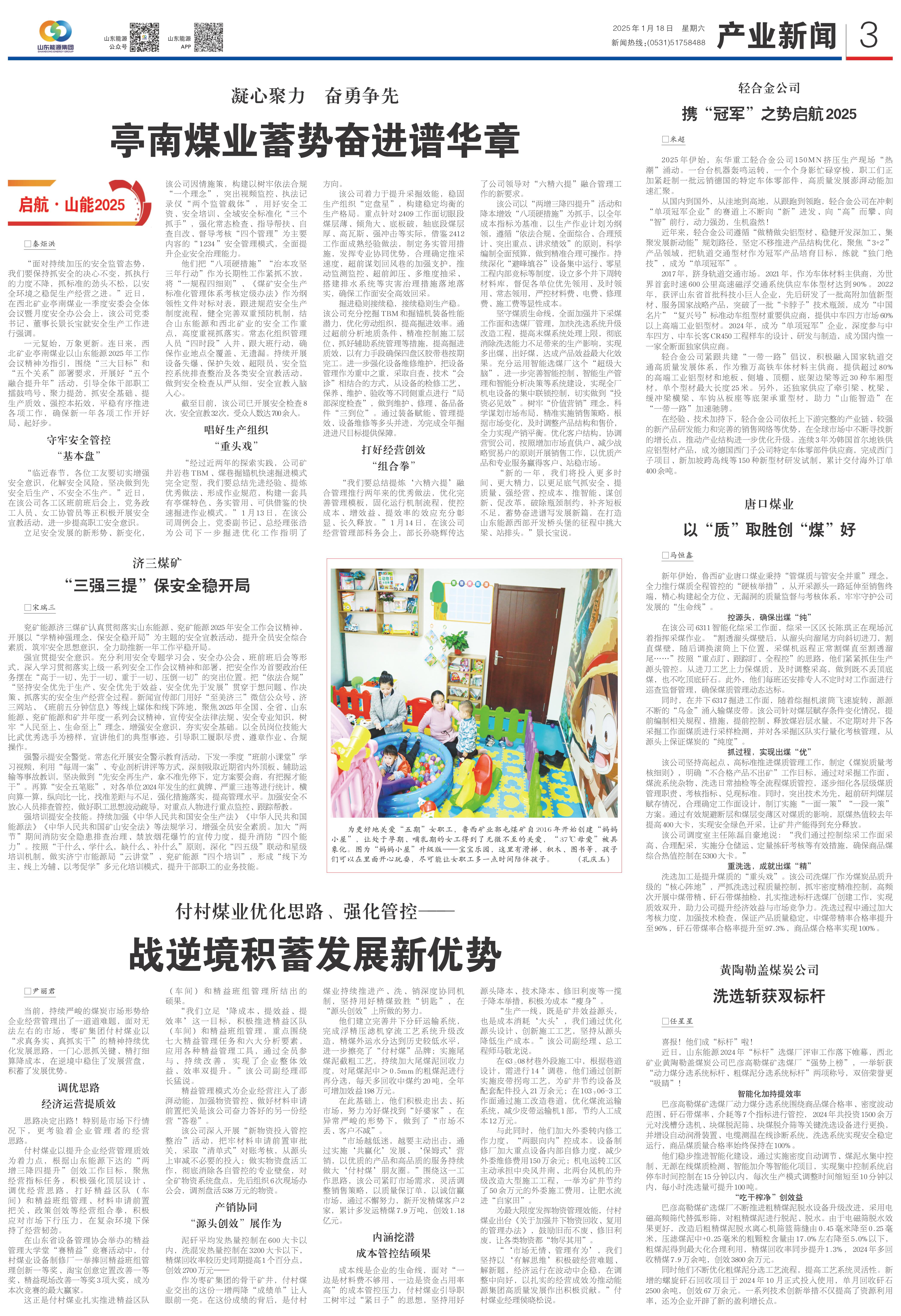 该公司坚持高起点、高标准推进煤质管理工作,制定《煤炭质量考核细则》,明确“不合格产品不出矿”工作目标,通过对采掘工作面、煤流系统杂物、洗选日常抽检等全流程煤质管控,逐步细化各层级煤质管理职责、考核指标、兑现标准。同时,突出技术为先,超前研判煤层赋存情况,合理确定工作面设计,制订实施“一面一策”“一段一策”方案。通过有效规避断层和煤层变薄区对煤质的影响,原煤热值较去年提高400大卡,实现安全绿色开采,让矿井产能得到充分释放。