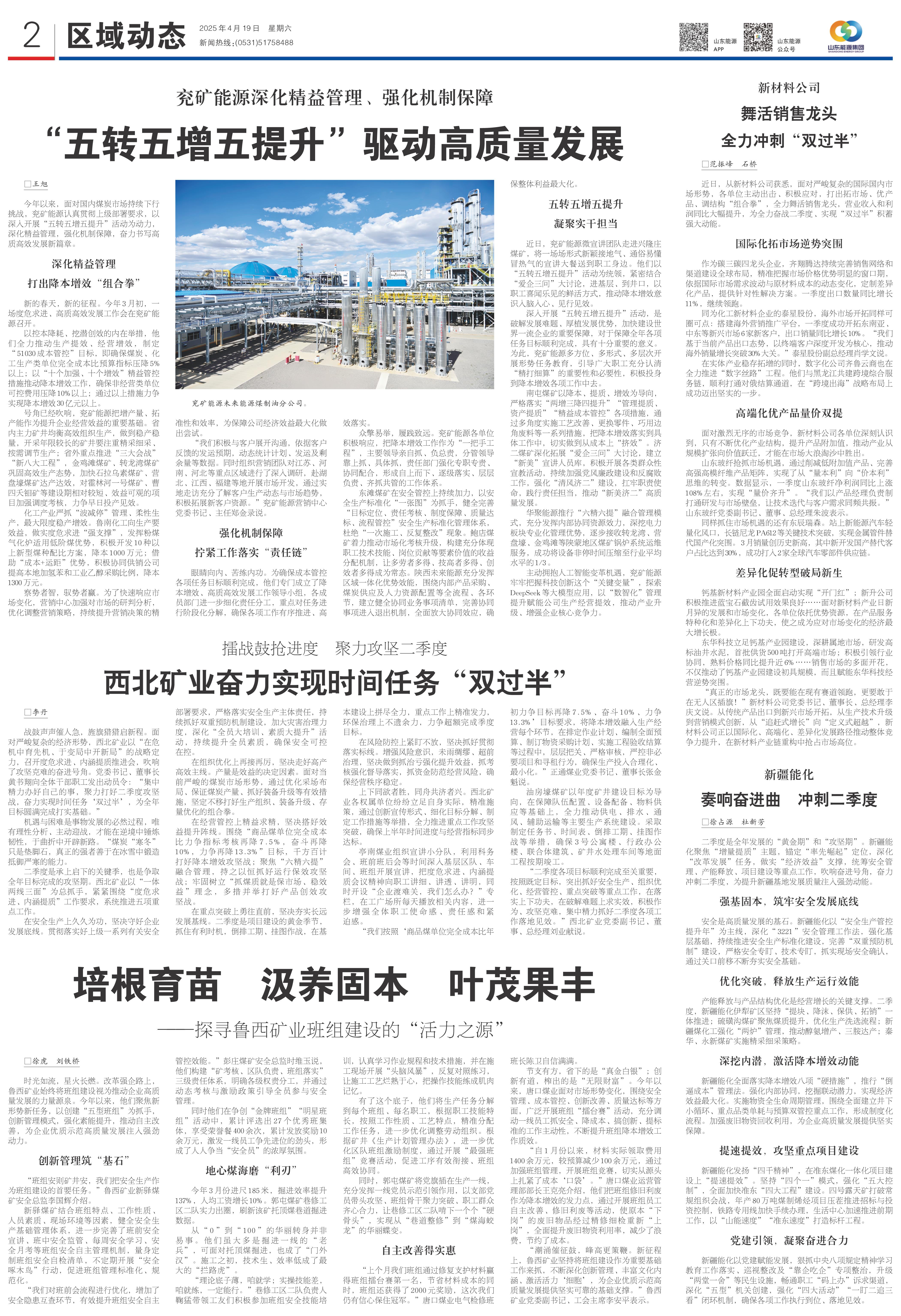 钙基新材料产业园全面启动实现“开门红”;新升公司积极推进蓝宝石截齿试用效果良好……面对新材料产业日新月异的发展和市场变化,各单位依托优势资源,在产品服务特种化和差异化上下功夫,使之成为应对市场变化的经济最大增长极。