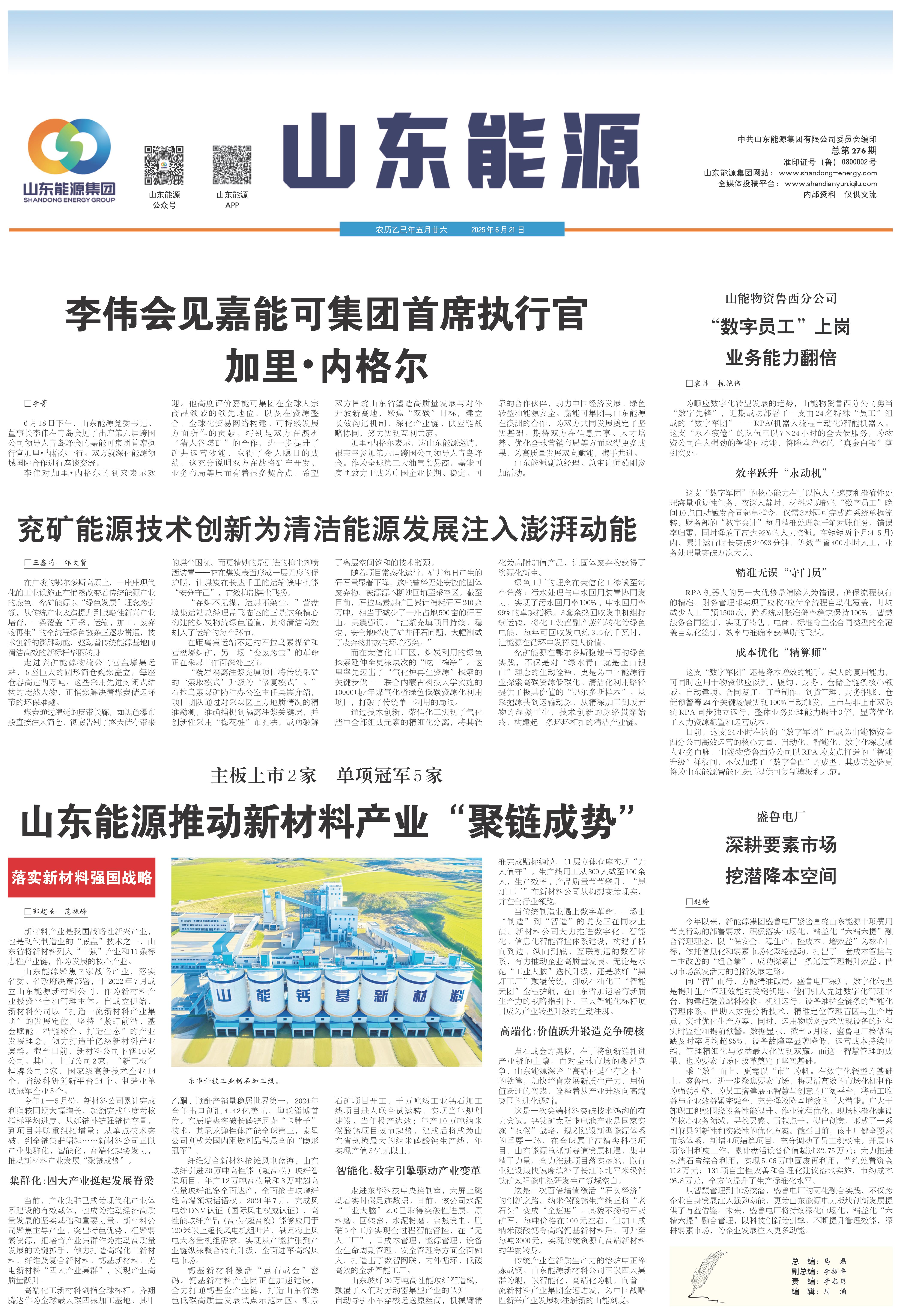 6月18日下午,山东能源党委书记、董事长李伟在青岛会见了出席第六届跨国公司领导人青岛峰会的嘉能可集团首席执行官加里?内格尔一行。双方就深化能源领域国际合作进行座谈交流。