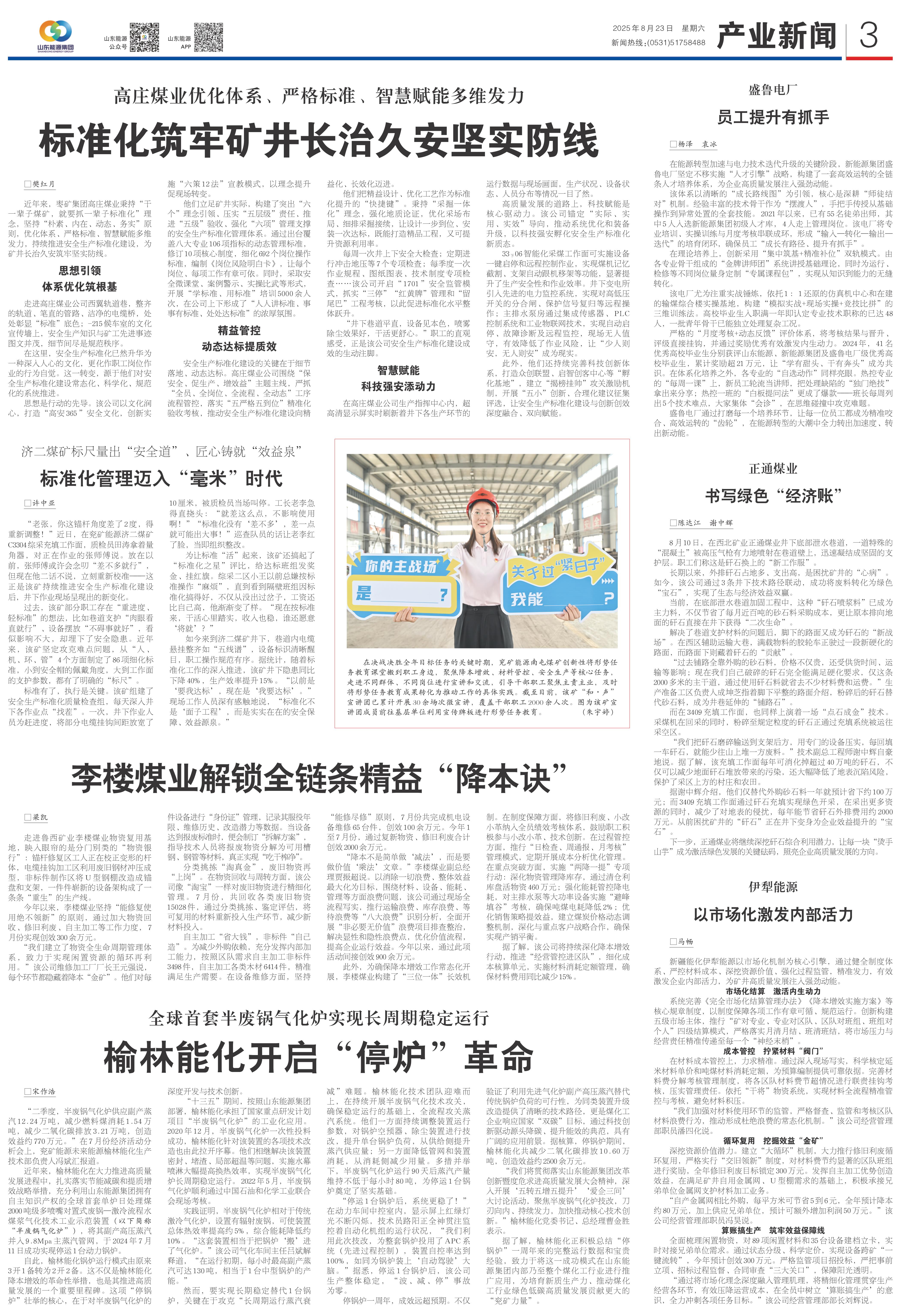 据了解,榆林能化正积极总结“停锅炉”一周年来的完整运行数据和宝贵经验,致力于将这一成功模式在山东能源集团内部乃至整个煤化工行业进行推广应用,为培育新质生产力、推动煤化工行业绿色低碳高质量发展贡献更大的“兖矿力量”。
