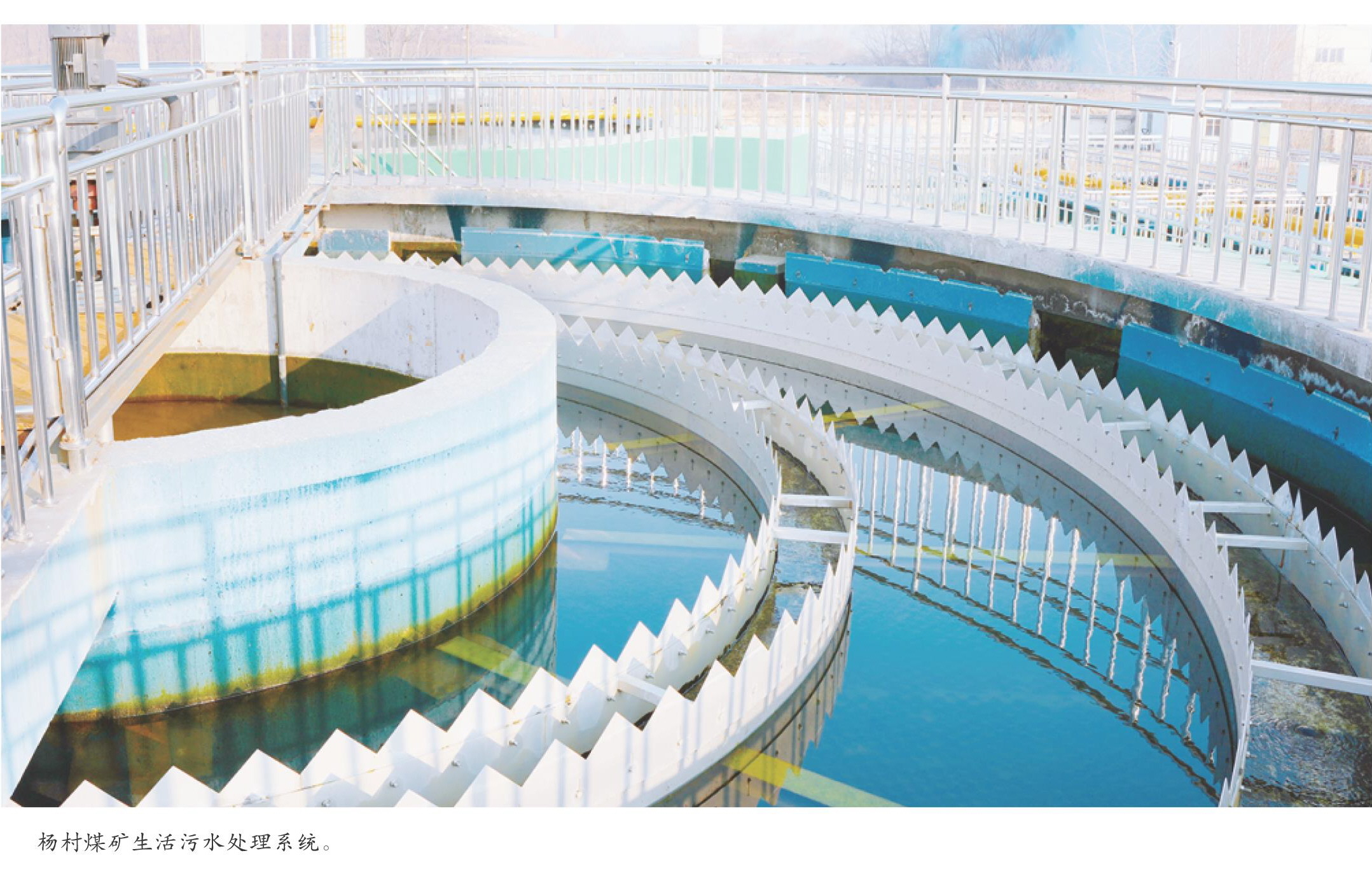 阳光轻洒在兖矿能源杨村煤矿污水处理总排放口的生物指示池上,波光粼粼,池水通透见底,几尾金鱼嬉戏追逐,轻吐水花,尽情吮吸着洁净水源带来的舒适与欢愉,一派生机盎然的生态图景悄然铺展。