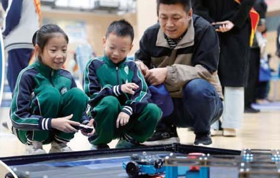 “今天我演示的是蒸汽机的原理,下面的酒精块燃烧以后会加热瓶中的液体,到一定程度后液体沸腾,产生的水蒸气可以推动瓶子顺时针旋转……”活动中,学生们化身项目设计者、互动体验者和游戏探索者,深入了解数字科技和应用数字科技,创新的思维和巧妙的设计引得现场观众赞不绝口。
