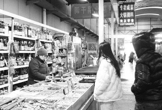 除了外出就餐,“居家火锅”凭借便捷舒适、食材自由搭配的优势,成为不少家庭的“暖心之选”,进一步拉动火锅食材销量攀升。在十甲农贸市场,经营调味品专卖店的齐瑞英正忙着给顾客打包火锅底料和蘸料,货架上麻辣、清汤、番茄等口味的底料一应俱全。“冬天在家吃火锅的市民越来越多,回头客特别多,我也早早备足了货。”齐瑞英笑着说,优良的品质和合理的价格,让居家火锅深受青睐,近期底料、蘸料销量比平时翻了一番。