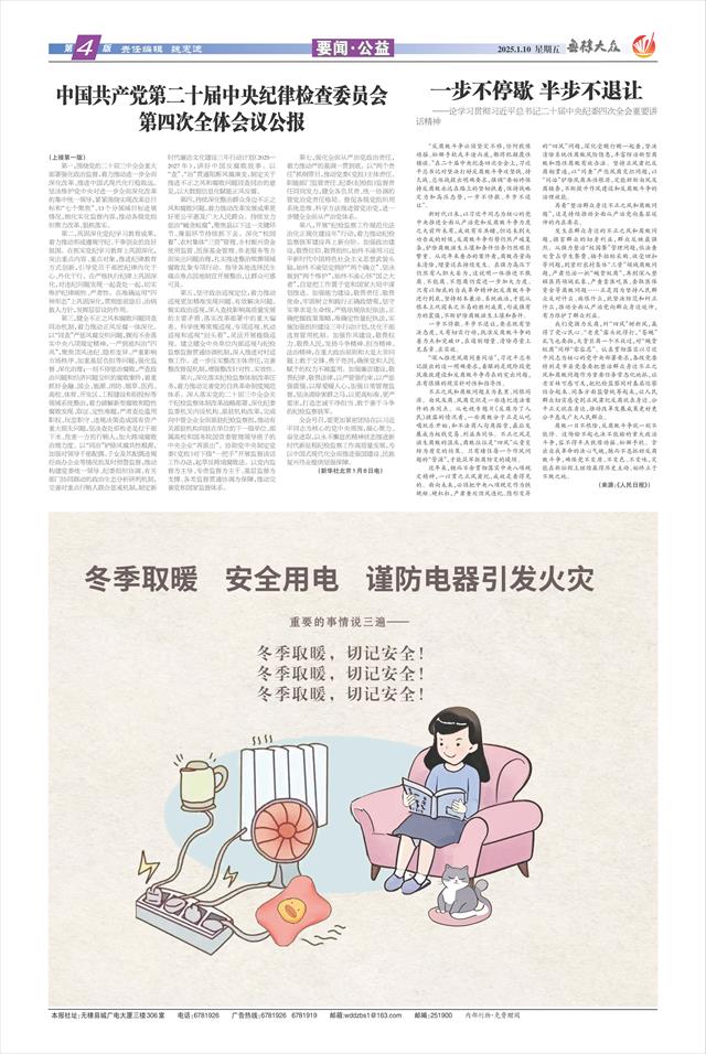 中国共产党第二十届中央纪律检查委员会第四次全体会议公报 (二○二五年一月八日中国共产党第二十届中央纪律检查委员会第四次全体会议通过)   中国共产党第二十届中央纪律检查委员会第四次全体会议,于2025年1月6日至8日在北京举行。出席这次全会的有中央纪委委员131人,列席247人。