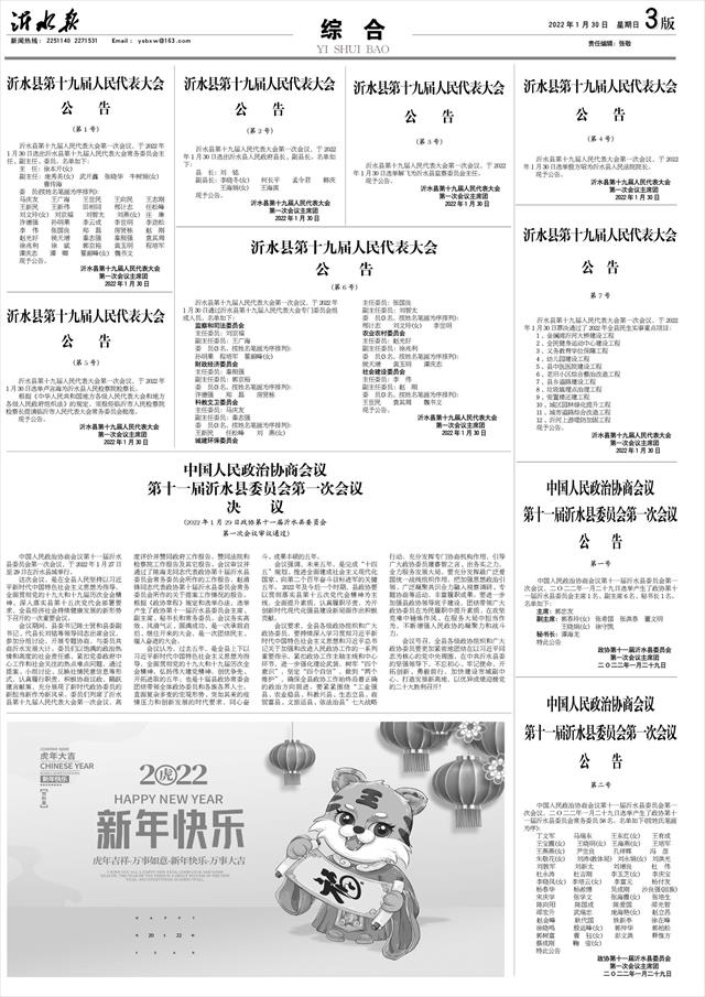 中国人民政治协商会议第十一届沂水县委员会第一次会议公告